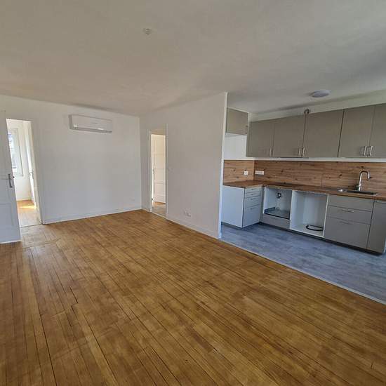 ST ETIENNE CARNOT - 49 rue etienne boisson -A 2 pas du tram, des commerces et de la carnot, à quelques minutes à pied du centre-ville -Très beau T4 de 65 m² entièrement refait à neuf + balcon -Séjour spacieux avec balcon et cuisine aménagée semi équipée (plaques induction, hotte) -Beau parquet dans l'ensemble de l'appartement, murs blanc -3 Chambres avec placards -Une salle d'eau avec douche italienne, meuble vasque et miroir -WC séparé -Cave -Double vitrages -Chauffage individuel par Pompe A Chaleur (PAC AIR-AIR) réversible (chauffage/clim)...