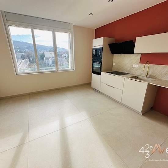 Quartier Bellevue/Au 12 Place Bellevue à St Etienne, Très beau T4 neuf d'environ 88.39m2 situé au 7ème étage avec ascenseur, composé d'une cuisine équipée et un séjour salon avec balcon plein sud, 3 chambres dont une avec balcon, une salle d'eau, un wc avec lave-mains, une buanderie. Chauffage collectif et Clim. Double vitrage et volet électrique. Loyer 890€/mois Provision sur charges 110€/mois Dépôt de garantie 890€ Frais d'agence : Visite, Dossier et Bail 690€ TTC et Frais d'état des lieux 200€ TTC. Possible location de Garage double 120€/...