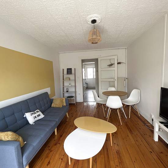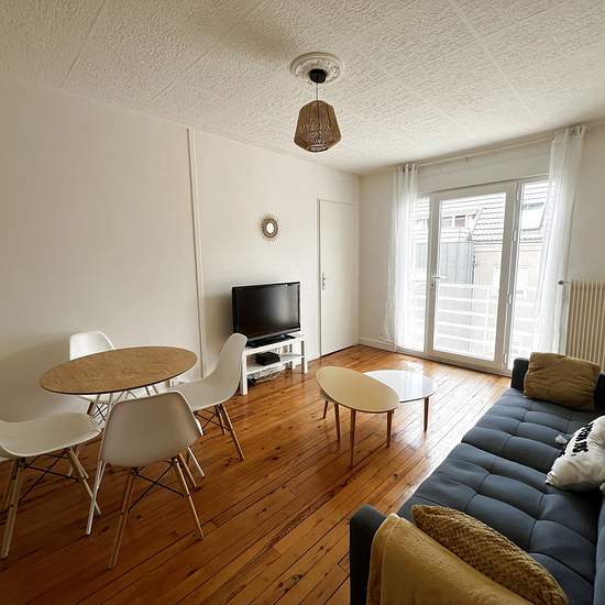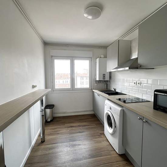 SAINT-ETIENNE - RUE MARENGO/PLACE CARNOT. POSSIBILITE LOCATION NON MEUBLEE. A DEUX PAS DU TRAM ET DE TOUTES LES COMMODITES. AU 5ème ET DERNIER ETAGE SANS ASCENSEUR D'UNE COPROPRIETE ENTRETENUE ET SECURISEE, APPARTEMENT DE TYPE T4 DE 63,58M2 (loi Boutin) TRAVERSANT EST-OUEST. COMPOSE COMME SUIT: - ENTREE (5,95m2) AVEC PLACARD. - SEJOUR/SAM (15,47m2) AVEC BALCON (1,02m2). - CUISINE (7,78m2). - CHAMBRE 1 (10m2). - CHAMBRE 2 (9,44m2). - CHAMBRE 3 (10,76m2). - SALLE D'EAU (2,33m2). - WC (1,02m2). INFORMATIONS FINANCIERES ET PRESTATIONS: DOUBLE VI...