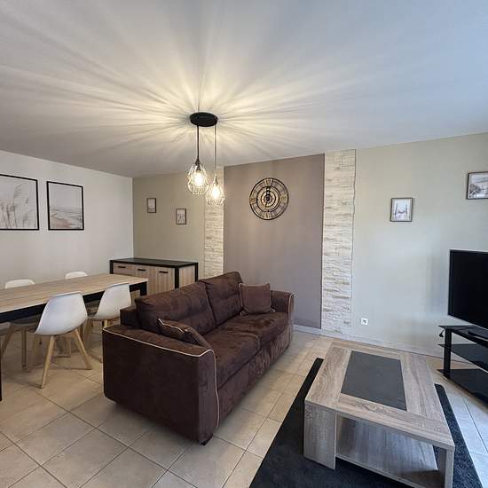 DISPO DE SUITE ! Bel appartement T4 MEUBLÉ avec goût, d'une superficie de 63.95m2, au premier étage avec ascenseur, au sein d'une copropriété de standing, très appréciée et bien entretenue, idéalement situé à proximité des commodités à Saint-Julien-les-Villas. Il se compose d'une entrée, un espace de vie lumineux donnant accès à une terrasse d'environ 8m2, une cuisine aménagée et équipée (plaque de cuisson, four, hotte, réfrigérateur), deux belles chambres de 10 et 11m2, une salle de bain aisi qu'un WC indépendant. Le logement dispose égalem...