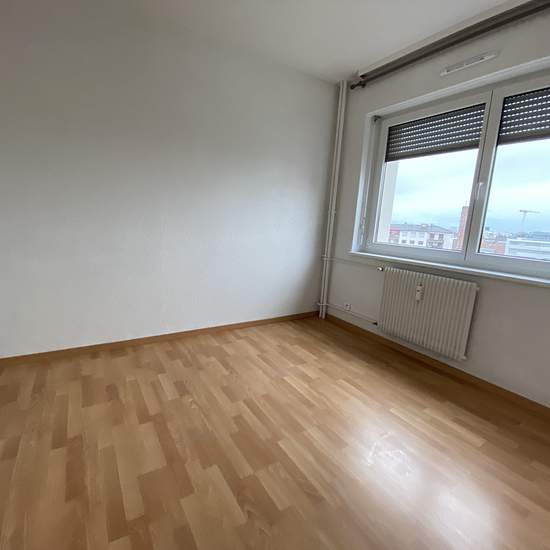 A 200 m de la frontière suisse et à 5 min à pied du Tram 11, au 6ème étage d'un immeuble calme, ce spacieux F3/4 de 78 m2 comprend : entrée avec placard, cuisine séparée partiellement équipée (hotte, four et plaque de cuisson) avec balcon, grand salon-séjour avec balcon sans vis à vis, 2 chambres, salle de bains et WC séparé avec lave-main. Cave et parking privatif. Chauffage collectif au gaz inclus dans les charges. Disponible de suite Les informations sur les risques auxquels ce bien est exposé sont disponibles sur le site Géorisques :