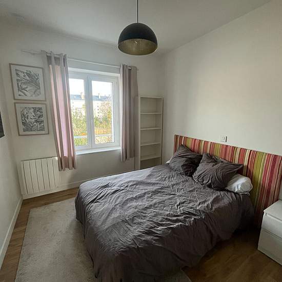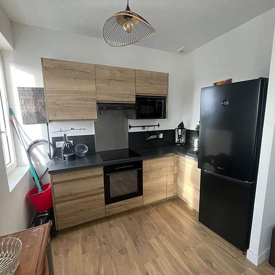 Secteur Dolmen, appartement duplex rénové avec goût situé au 2ème et dernier étage d'une petite copropriété de trois logements. Il offre un séjour lumineux avec cuisine aménagée et équipée (éléments hauts et bas, hotte, plaques de cuisson, four, micro-ondes, lave-vaisselle, réfrigérateur, congélateur), une chambre, salle d'eau et wc. A l'étage deux chambres avec chacune un point d'eau. Les charges comprennent les charges locatives, 2h de ménage/15j, taxe d'ordures ménagères. Chauffage électrique. Libre de suite. Les informations sur les ris...