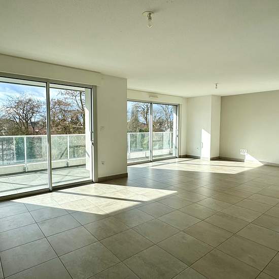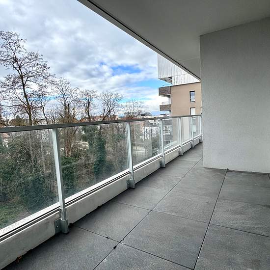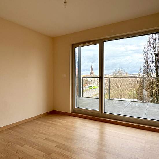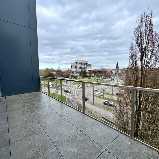 26 Rue de la Thumenau. Proche des commerces, du Tram et des axes autoroutiers. VAUBAN Immobilier vous propose dans une résidence récente, un beau et lumineux 4 pièces tranversant de 102,60 m2 situé au 4ème étage avec ascenseur comprenant, une entrée avec placard, un beau et grand séjour de 40m2 avec une cuisine équipée ouverte donnant accès sur une terrasse de 19 m2, trois chambres avec chacune un accès terrasse de 9,96 m2 (les peintures des deux chambres de couleur seront repeintes en blanc), une salle de bains, un wc séparé, une buanderie...