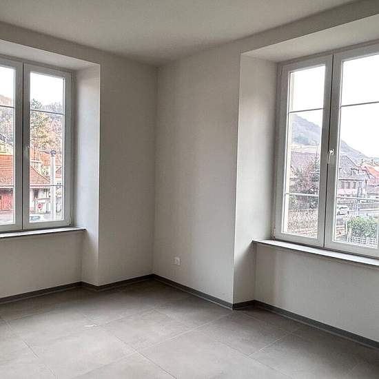 THANN Appartement 4 pièces 86m² avec cave et parking. Situé au 1er étage d'une petite copropriété, appartement 4 pièces d'environ 86,23m² entièrement rénové en 2026. L'appartement est composé d'un sas d'entrée, d'une cuisine équipée ouverte sur le séjour, de 3 chambres, d'une salle de bains ainsi que d'un wc séparé. 1 place de parking et une grande cave complètent le logement. DISPONIBILITE DE SUITE