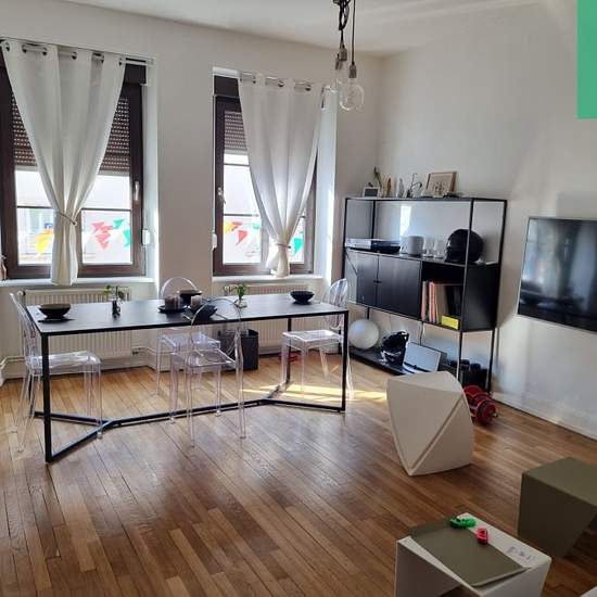 APPARTEMENT F4 THIONVILLE. Pour toute information ou pour organiser une visite, merci de bien vouloir nous contacter UNIQUEMENT par email (l'adresse mail figure sur la fiche de renseignements présente en photo dans l'annonce) Appartement F4 de 88,81 m2, situé au 2ème étage (sans ascenseur) d'un immeuble en centre-ville, comprenant : une entrée de 7,76 m2, une salle de bain avec wc de 5,81 m2, une cuisine semi-équipée (four, plaque de cuisson et hotte) de 9,66 m2 avec un cellier attenant, un petit balconnet de 2,75 m2, deux chambres (19,82 m...