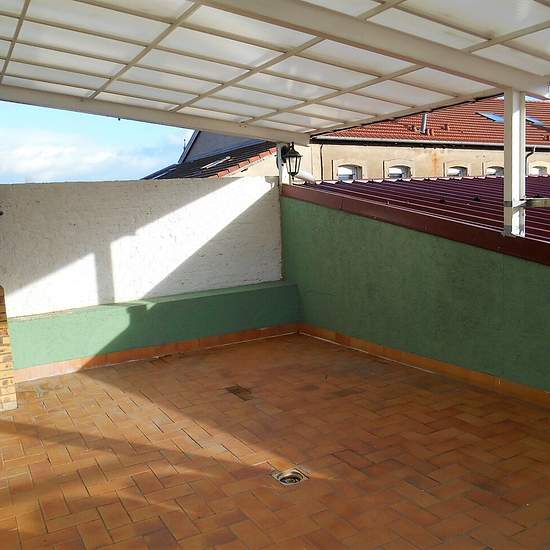 TOUL - Quartier St Michel - Appartement de type F4 d'environ 110m² habitables en duplex avec Terrasse et Parking privé. Cuisine équipée (hotte, plaque, four et réfrigérateur), Séjour lumineux accès terrasse couverte avec barbecue. 2 grandes Chambres, Salle de bains avec baignoire et douche, espace bureau/lingerie. Chauffage individuel gaz. Disponible immédiatement. Toutes nos annonces sur