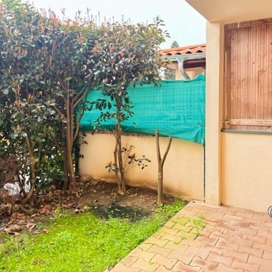 T5 de 95 m² en Rez-de-jardin, Quartier Purpan, avenue des Arènes Romaines, dans résidence fermée avec piscine et espaces verts. Entrée avec placard, double séjour donnant sur la terrasse et le jardinet, cuisine séparée (aménagée de placard haut et bas et équipée de plaque induction et hotte), trois chambres avec placard, une salle d'eau, une salle de bains et toilettes séparées. Loué avec deux caves et deux parkings. Disponible immédiatement.