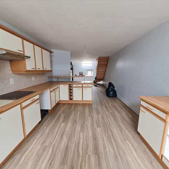Au centre de Vagney, bel F4 en duplex accessible depuis une cour intérieure. Composé d'une cuisine équipée ouverte sur séjour, de 2 chambres, d'un bureau, d'une salle de bains et de 2 WC. Parking et cave. Chauffage gaz de ville.