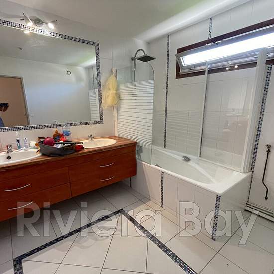 VILLEFRANCHE SUR MER - CALME - TERRASSE 20m² VUE MER - PISCINE - PARKING Dans une résidence sécurisée de standing, avec piscine, Grand 4p loué vide, avec terrasse au calme, magnifique vue mer sur le port et la rade de Villefranche sur mer, Séjour ouvert avec grandes baies vitrées sur la terrasse et vue mer, Cuisine indépendante aménagée, emplacement lave vaisselle et lave linge 3 chambres dont une avec salle d'eau en suite refaite a neuf, salle de bains moderne meuble double vasque, baignoire et toilettes, Toilettes invités, nombreux rangeme...