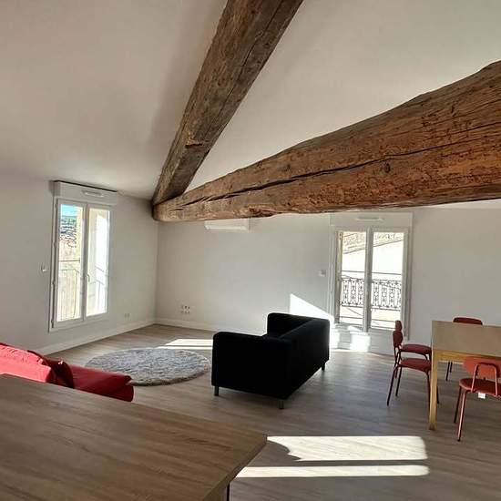 Bonjour, Superbe T4 - Colocation possible: Location meublée d’un magnifique appartement de 112m² avec poutres apparentes, entièrement rénové avec parquet au sol, climatisation réversible, très lumineux, bénéficiant d’une double exposition et d’une belle hauteur sous plafond. Localisation - Avantages : Situé dans le centre de Villeveyrac (34560), à 30 minutes de Sète et de Montpellier, au 2ème et dernier étage d’un petit immeuble, l’ensemble du rez-de chaussée étant occupé par des bureaux. De nombreux commerces sont accessibles en 1 minute à ...