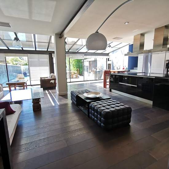 L'agence NOVA IMMOBILIER vous propose à la location une maison mitoyenne MEUBLÉE, située à proximité immédiate du Set Club, au Pey Blanc, d'environ 145 m². Cette maison sera disponible à la location de mi-décembre 2025 à fin juin 2026. Ce bien est composé d'une grande pièce de vie avec coin cuisine, salon et salle à manger. Nous trouvons également une grande chambre, sans fenêtre sur l'extérieur avec penderie et salle de douche avec baignoire et douche, et un wc indépendant. Une deuxième pièce borgne fait office de coin nuit avec salle de do...