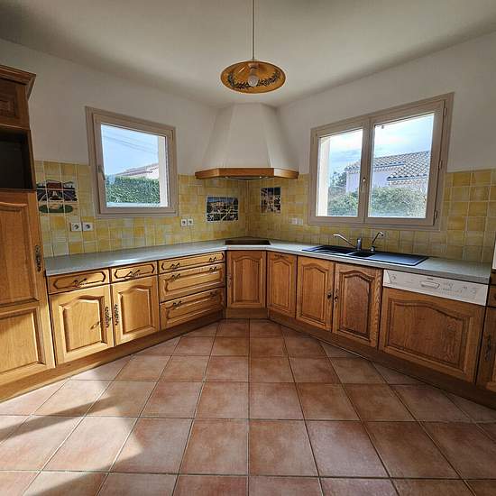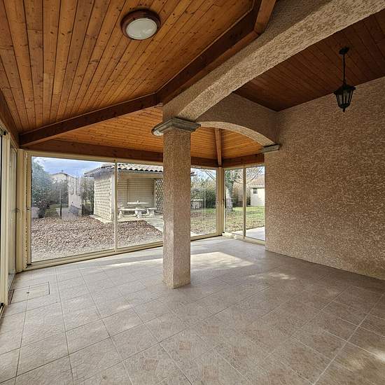 EN EXCLUSIVITE : Charmante villa de plain-pied sur parc arboré de 908 m² Découvrez cette villa fonctionnelle et lumineuse implantée sur un terrain clos et paysagé de 908 m². Parfaite pour une vie de plain-pied, elle offre des prestations pratiques et confortables : - Hall d'entrée avec placard - Cuisine aménagée donnant sur le séjour - Salon / séjour lumineux, prolongé par une belle véranda (chauffée) qui offre un espace de vie de plus de 50 m² - Deux chambres avec placards aménagés - Bureau (possibilité d'une troisième chambre) - Salle de b...