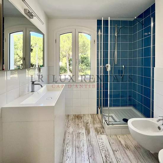 A propos de ce bien UNIQUE ! Idéalement située à l’ouest du Cap d’Antibes, à deux pas des plages et des commerces, Cette maison entièrement rénovée bénéficie d’un emplacement rare au sein d’une résidence sécurisée. Répartie sur trois niveaux, elle allie confort, élégance et cadre de vie privilégié. Rez-de-jardin : vaste séjour lumineux avec cuisine ouverte, ainsi qu’une chambre en suite. Étage supérieur : superbe chambre avec salle de douche attenante, ouvrant sur deux grandes terrasses, dont l’une offre une belle vue mer et la seconde sur ...