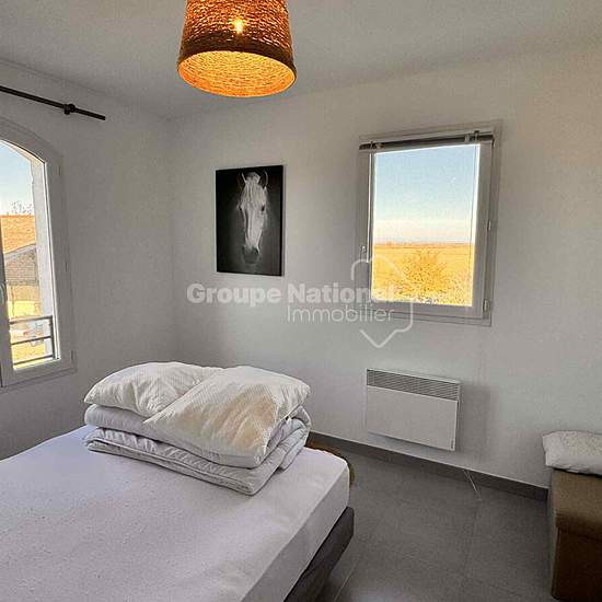 Chemin du Mas d'Agon, à 10mn d'ARLES en voiture, dans un ensemble immobilier, une très belle maison T4 de 92m² en R+1 comprenant : En rez-de-chaussée : Un beau séjour (41,8m²) avec un coin cuisine meublé et équipé, un cellier et un w.c. A l'étage : 3 chambres (11,97m² , 11,41m² et 11,12m²) avec placards de rangement, une salle d'eau et un w.c. Une terrasse d'environ 20m². A disposition : parkings occupants + visiteurs. Location meublé en contrat longue durée (1 an reconductible tacitement). Chauffage : climatisation réversible et chauffage é...
