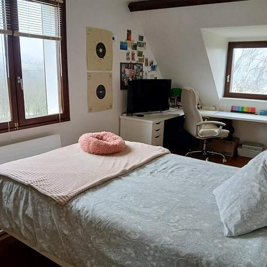 Belle maison située à proximité immédiate des commodités et des services, offrant une vue imprenable sur les montagnes. Ce bien dispose de trois chambres et d'un garage. Au rez-de-chaussée, un séjour avec insert à bois, une cuisine aménagée, ainsi qu'une salle de bains équipée d'une baignoire et d'une double vasque et WC indépendant. À l'étage, un grand palier dessert trois chambres, chacune dotée d'un placard de rangement. L'extérieur se compose d'un jardin clos, d'un abri de jardin et d'un garage privatif. Disponible : Mars 2026 Nous vous ...