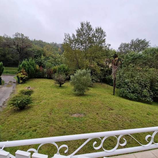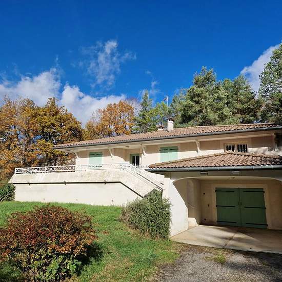 AUCH - Quartier résidentiel A moins de 3 minutes du centre ville et de ses commodités Jolie villa Type 4 d'environ 110m² avec grand garage en sous-sol. Spacieuse pièce de vie ouvrant sur grande terrasse, cuisine semi-équipée avec coin repas, couloir desservant 3 chambres, une salle de bains avec baignoire, douche et wc, un wc indépendant, une buanderie. Chauffage au sol avec pompe à chaleur Beau terrain arboré et clôturé d'environ 2000m² Abri voiture Libre début février
