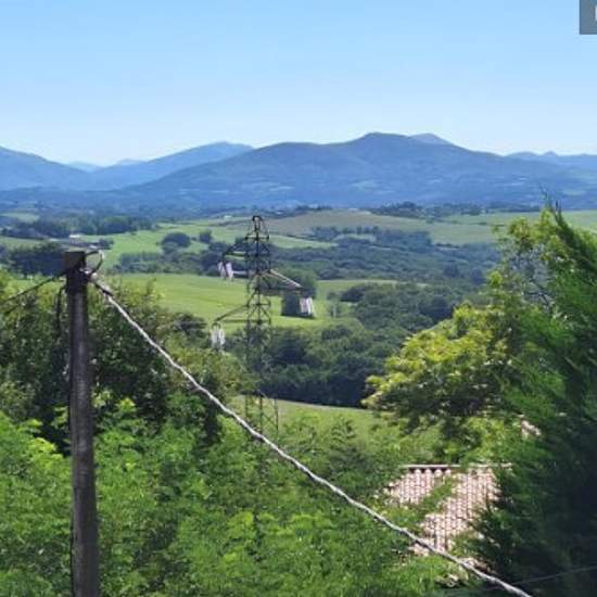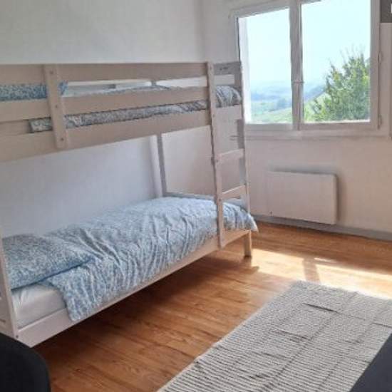 Cet hébergement est doté d'un salon et d'une cuisine équipée au rez de chaussée, puis d'un coin nuit à l'étage composé de 2 grandes chambres et d'une salle de bain. Il dispose d'une terrasse extérieure et d'un jardinet. Deux entrées indépendantes permettent d'accéder au logement. Sa particularité est d'être très lumineux et d'offrir, depuis toutes les pièces, des vues imprenables sur les montagnes et les collines du Pays Basque, ainsi que sur le village de Bardos.