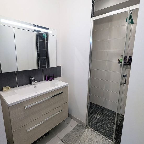 À Beignon, nous vous proposons cette propriété T5 à louer sur un terrain aménagé avec goût et piscine extérieure. Prestations de qualité et performances énergétiques optimales. Cette maison est composée au rez-de-chaussée d'une entrée avec placard, une belle pièce de vie lumineuse avec une cuisine aménagée et équipée ouverte, une chambre avec placard et salle d'eau privative, un WC, une buanderie. A l'étage, vous trouverez un dégagement desservant trois chambres avec placards, une salle de bains, un WC. Garage attenant faisant office de stoc...