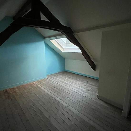 Centre bourg. Maison de ville 4 pièces de 78.33 m² comprenant au rez-de-chaussée : séjour, cuisine aménagée, W. C. A l'étage : deux chambres, salle de bains avec W. C. Au deuxième étage : chambre. Chauffage au fuel - Terrasse - Chaufferie - Grenier - Disponible le 08 janvier 2026 - . « les informations sur les risques auxquels ce bien est exposé sont disponibles sur le site Géorisques : ».