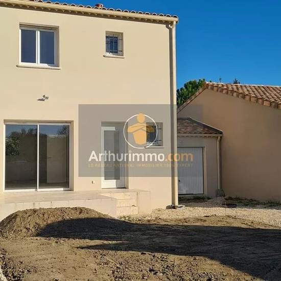 Maison T4 mitoyenne par le garage avec terrain clôturé. Elle comprend une pièce de vie qui s'ouvre sur une terrasse et le jardin. Un coin cuisine, une buanderie et un WC. À l'étage, 3 chambres, une salle d'eau avec douche italienne et WC. Chauffage climatisation réversible et radiateurs.