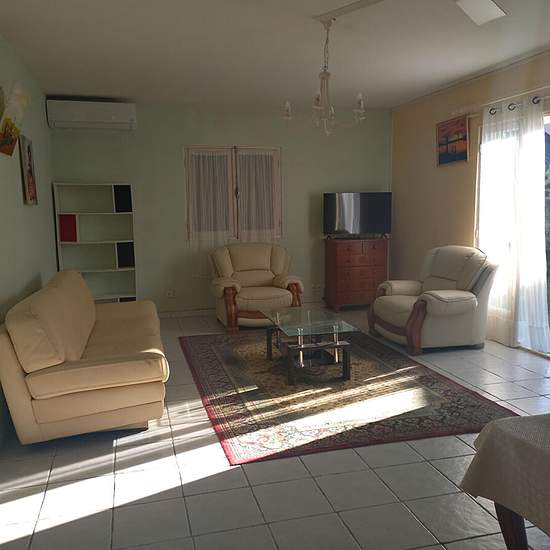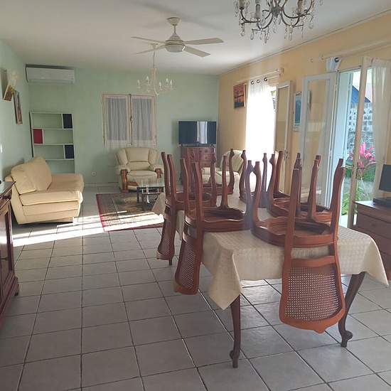 L'agence Loger Immobilier de Bras-Panon vous propose à la location cette maison meublée de plain-pied, située au calme dans un cadre agréable. Elle offre près de 99 m² habitables, comprenant un vaste séjour avec cuisine équipée, deux chambres, une salle de bain avec douche et baignoire, ainsi qu'un WC indépendant. A l'extérieur, vous profiterez d'un jardin de 500 m² avec piscine, d'une belle terrasse à l'arrière, d'un garage, d'un abri de jardin et surtout d'un espace indépendant pouvant servir de bureau, studio ou rangement. Loyer mensuel :...