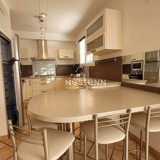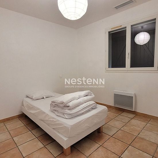 A saisir ! Villa 2 faces meublée de type 5 avec jardin? composée au rez-de-chaussée, de : Un vaste salon avec cuisine ouverte aménagée et équipée, un water-closet, un garage ainsi qu'une mezzanine de garage. Au premier étage, 3 chambres dont 2 avec placards, un bureau, un water-closet, une salle de bains avec douche et baignoire. Vous trouverez également une terrasse et un jardin avec piscine hors sol, à l'arrière de la maison ainsi qu'une terrasse et un jardinet à l'avant de la maison. Une climatisation gainable vous assure un maximum de co...