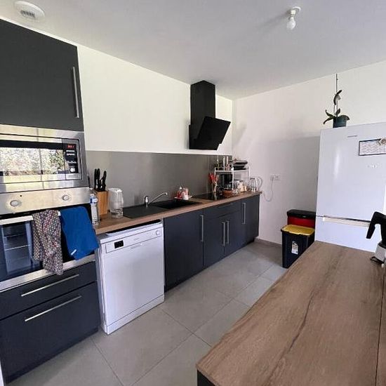 À Cadours, à proximité immédiate du centre ville, des écoles, collège et commodités (pharmacie, médecins et centre commercial) dans une petit lotissement de 5 maisons, nous vous proposons une villa neuve BBC meublée de 120 m² hab avec climatisation réversible, garage attenant et jardinet environ 250 m² clôturé et fermé par un portail coulissant télécommandé. La cuisine américaine est meublée et équipée (plaque, hotte, four, micro ondes), salle d'eau à l italienne, 3 chambres dont 2 chambres avec placards. Le garage de 17 m² est attenant et i...