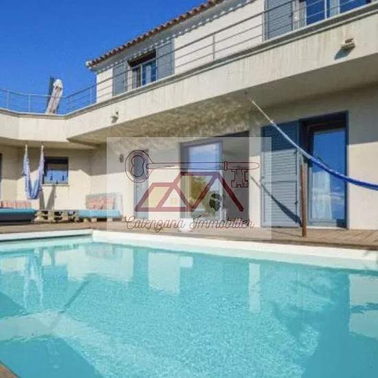 Agréable et atypique villa sur un niveau située dans un quartier paisible du village, à 5 mn à pied du centre village. La villa se compose de trois chambres, deux avec salle d'eau, une chambre parentale avec salle de bain, un séjour spacieux donnant sur une terrasse solarium avec vue sur mer et montagne. Une cuisine entièrement équipée avec cellier-buanderie en sous sol, un jardin donnant sur une piscine de 3 x 7. TARIF SEMAINE 2.750 € FORFAIT MENAGE ET DRAPS 200€.