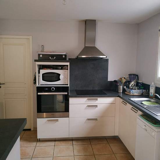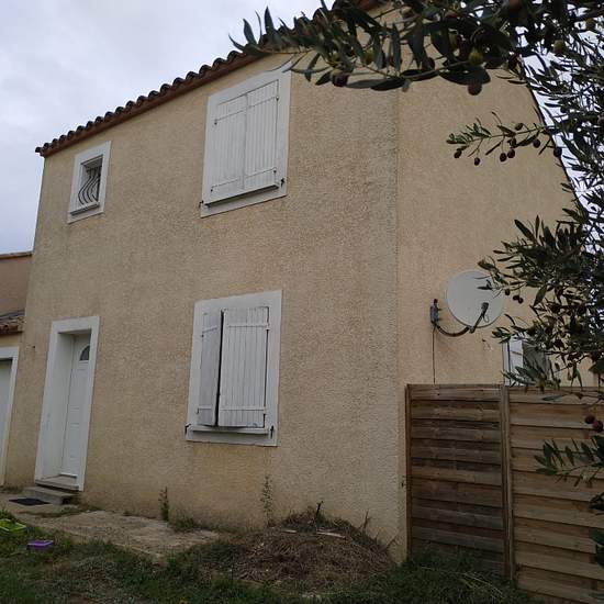 Canet d'Aude : Maison de type 4 de 90m2 r+1 libre sur trois faces. Comportant Entrée, séjour avec cuisine équipée donnant sur le terrain, wc, rangement, garage. Trois chambres et salle de bain avec wc spacieuse à l'étage. Double vitrage, chauffage .électrique, climatisation dans le séjour. Disponible de suite pour 820 euros/Mois.