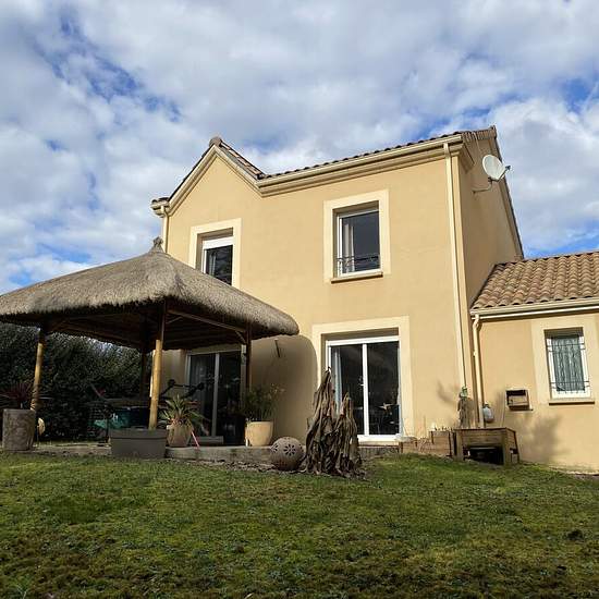 Charmante maison de type F4 à Champcevinel, dans une copropriété calme. Cette maison moderne de presque 90m2 se compose ainsi : une entrée avec placard, une cuisine aménagée et équipée (hotte, plaque de cuisson gaz, four et lave-vaisselle), une pièce de vie spacieuse et lumineuse avec un accès sur une terrasse et un jardin clos. A l'étage : 3 chambres avec placards, et une salle de bains avec WC. La maison possède également un garage et une place de stationnement à l'avant. Climatisation réversible. Les charges comprennent : entretien des es...