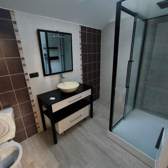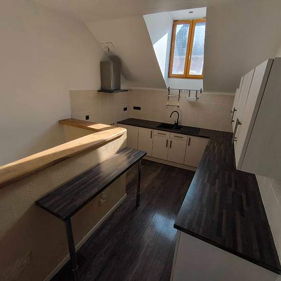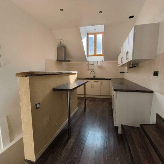 Maison de ville entièrement rénovée comprenant en rez de chaussée : Une entrée/ buanderie, une pièce, un grand garage avec coin atelier. A l'étage : une cuisine aménagée, une salle d'eau avec wc, une salle de séjour, deux chambres dont une avec rangements. Loyer 800 euros Dépot de garantie : 800 euros Honoraires de location : 630 euros
