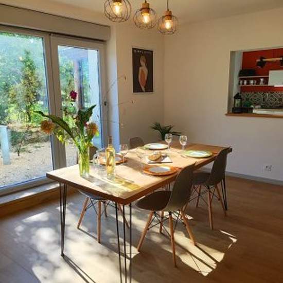 Attractive detached house, fully renovated and furnished, comprising a 25 m2 living room, fitted kitchen, 2 bathrooms and 3 bedrooms, each with 1 double bed. Air/air heat pump heating and electric ceramic inertia radiators in the bedrooms. There is a 350 m2 garden and a small conservatory for the half-season. The house also has a garage and 3 parking spaces. Services included in rent & charges: Water Electricity Heating Internet The security deposit of 1200 € must be paid, before the keys are handed over, by bank transfer or cheque (cashed).