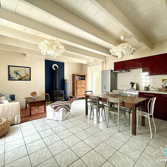 LOCATION MEUBLEE - SITUEE ENTRE BOURG ET MER. Maison d'habitation lumineuse et agréable qui comprend au rez-de-chaussée: entrée, pièce de vie avec accès à la terrasse, dégagement, wc, buanderie. Au 1er étage: dégagement/couloir, wc, deux chambres. Au 2ème et dernier étage: dégagement, salle de bains avec wc, chambre. Terrasse mais pas de jardin. A VISITER !