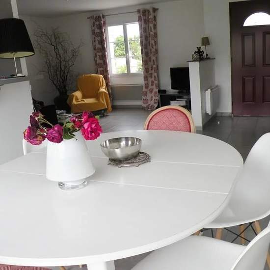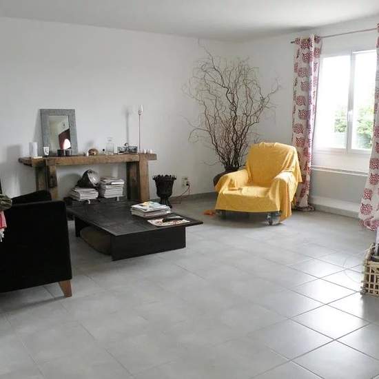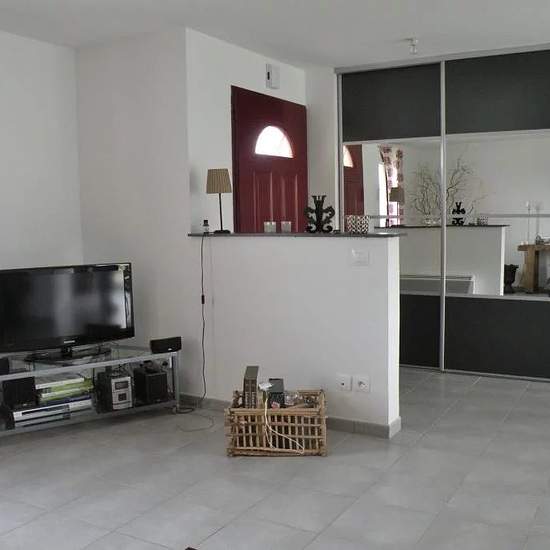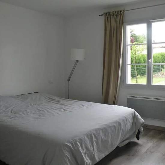 7 km du centre de Cognac Maison contemporaine lumineuse et fonctionnelle: Entrée avec placard aménagé sur séjour avec cuisine ouverte aménagée et équipée de plaque et hotte, large couloir, 3 chambres (ttes avec placard aménagé) SDE, Cellier/buanderie, terrasse, jardin clos et arboré env 700 m². LIBRE 15 FEVRIER 2023