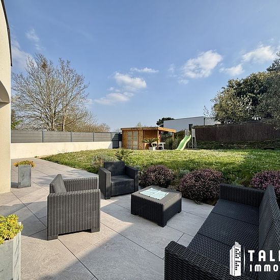 COUERON MAISON CONTEMPORAINE (141m² 4ch) Jardin Luminosité Calme Cette maison individuelle de 2015, située dans un lotissement calme, offre des espaces lumineux et fonctionnels pour toute la famille. Elle comprend : Au rez-de-chaussée : une entrée avec placard, une pièce de vie baignée de lumière grâce aux baies vitrées ouverte sur une cuisine aménagée et équipée (hotte, plaques, four, micro-ondes, lave-vaisselle, réfrigérateur-congélateur). La terrasse (avec SPA) est accessible depuis la pièce de vie et la suite parentale, qui dispose égale...