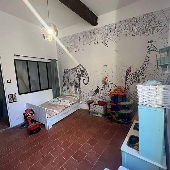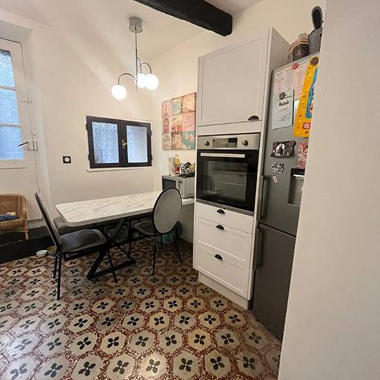 Coursan village tous commerces Très belle maison de village traversante avec acèss sur 2 rues. Libre sur 2 faces composée en RDC d'un séjour, avec pôele à granules, donnant sur une belle cuisine équipée moderne neuve. Au 1er étage 2 grandes chambres avec rangements et une salle d'eau design avec douche à l'italienne, double vasque et WC Au 2nd étage une grande pièce aménagée polyvalente avec possibilité de la convertir en suite parentale et une terrasse de 17m² avec vue sur les toits exposée plein sud Beaucoup de cachet d'origine, tommettes,...