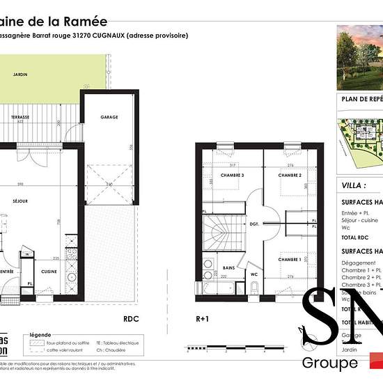 QUIETIS GESTION // DOMAINE DE LA RAMEE DISPONIBLE LE 10/03/2026 Contactez notre agent commercial Mme Margaux TUNE au 06x26x71x16x63 ou par mail : EMAIL pour visiter cette Villa duplex T4 de 81.65m² avec un garage de 14.46m², une terrasse de 12.44m² et un jardin de 42.23m². Au RDC : une entrée avec placard et un WC indépendant. Séjour ouvert sur une cuisine équipée d'un plan de travail, un évier, une plaque vitrocéramique 4 feux, une hotte, meubles haut et bas. A l'étage : trois chambres avec placard, une salle de bains double vasque et un WC...
