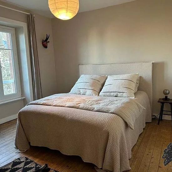 Belle villa de caractère située, au calme, entre l'église Notre-Dame et la place du marché. D'une surface habitable de 100m², cette élégante maison se compose au rez-de-chaussée, d'une grande pièce de vie avec salon, salle à manger et cuisine équipée donnant sur le jardin, WC. Le premier étage dessert une première chambre avec lit 160 donnant côté rue, une deuxième chambre avec lit 160 donnant sur le jardin et une salle d'eau avec WC. Au deuxième étage, vous trouverez une grande chambre avec deux lits 90, un lit 140 et sa salle d'eau privati...