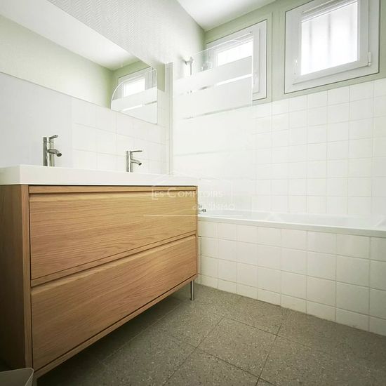 Conçue spécifiquement pour répondre aux besoins des entreprises et offrant un cadre de vie pratique et fonctionnel. Maison divisée en deux appartements comprenant : Une entrée en commun avec un local buanderie indépendant avec machine à laver pour l'appartement du RDC. Au RDC, appartement T3 de 57,31 m² habitable avec : Entrée, cuisine séparée A/E (plaque, four, frigo), séjour, couloir desservant salle de bain, WC et deux chambres. Classe énergétique : D Au 1er étage, appartement de 69,60 m² habitable avec : Entrée avec placard, cuisine A/E ...