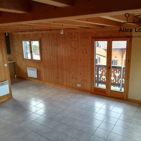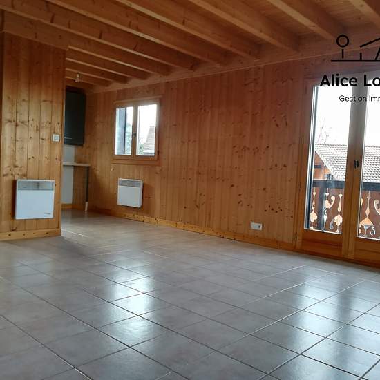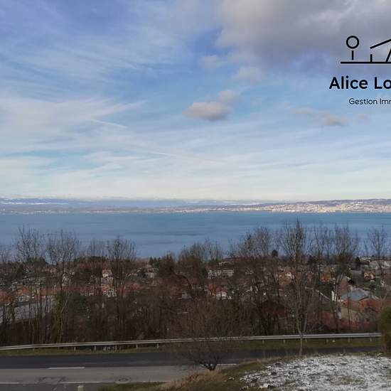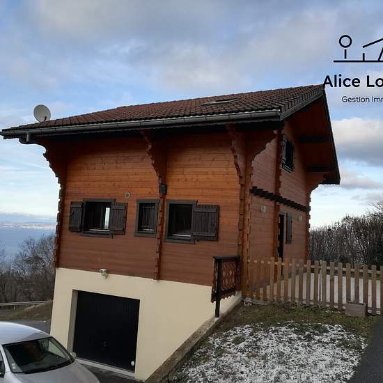 CHARMANT CHALET T3BIS - VUE PANORAMIQUE Sur les hauteurs d'Evian, charmant chalet T3bis en duplex bénéficiant d'une vue panoramique sur le lac, de 73m2 et se composant: Au 1er niveau: une entrée une cuisine ouverte sur le séjour un bureau un WC A l'étage: une dégagement deux grandes chambres avec placards une salle de bains avec douche et baignoire un WC En complément, ce bien dispose d'une belle terrasse exposée plein sud, d'un balcon vue lac, d'un sous sol complet et d'un jardin privatif. Loyer 1362€uros par mois (pas de charges). Disponib...