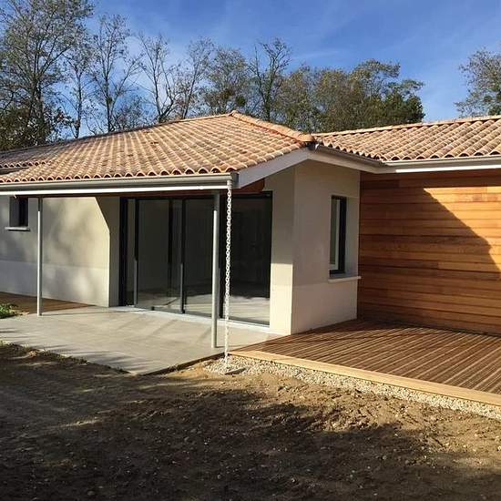 Eysines limite Le Haillan ,Disponible de suite. Maison plain pied, de construction BBC, de 102m². Entrée avec penderie, salon/séjour, cuisine aménagée, cellier/buanderie, 3 chambres dont une parentale, une salle de bains et wc. Garage. Terrain.