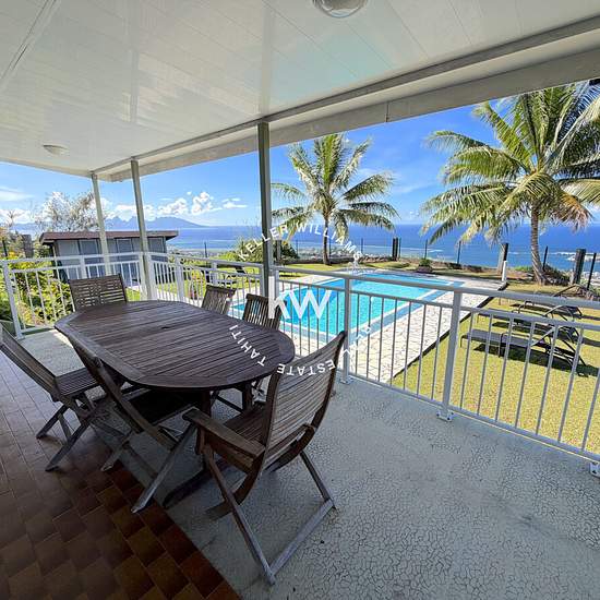 Située dans les hauteurs de Faa’a, découvrez cette grande villa sans vis-à-vis de 170m² avec une vue panoramique allant de Moorea à la pointe vénus. La maison peut convenir à une famille et aussi à un professionnel souhaitant exercer en libéral grâce à un bureau avec WC attenant et salle d’attente. La propriété est située sur un terrain plat, arboré et clôturé d'environ 2 200 m2 et comprend : -Cuisine équipée avec buanderie attenante -Grand salon - salle à manger -3 chambres climatisées : .Chambre parentale avec dressing et salle de bain pri...