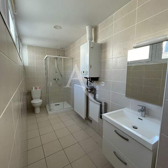 Maison de ville avec cour. Comprenant : un séjour-salon avec cuisine ouverte, trois chambres, une salle d'eau et un wc supplémentaire avec lavabo Chauffage au gaz de ville.. Stationnement situé à deux pas. Libre de suite. REF : N3729