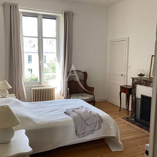 Maison en pierre louée meublée. Les commerces, les écoles et les transports sont accessibles à pied . La maison comprend : une entrée, un wc indépendant, un salon lumineux, une salle à manger, une cuisine indépendante aménagée/équipée, un cellier et à l'étage : 4 chambres et une salle de bains avec wc. Un second salon donne sur le jardin clos. Cave. Libre de suite Réf : N4622