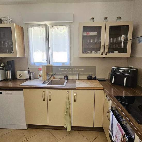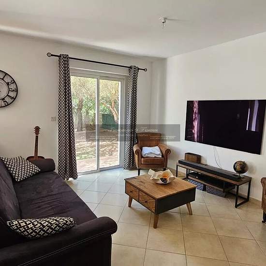 ST AYGULF - A LOUER A L’ANNÉE VILLA AVEC JARDIN ET GARAGE Cette dernière se compose d'une entrée donnant sur vaste séjour/salon avec climatisation réversible et accès de plein pieds à la terrasse et jardin avec gazon synthétique ; une cuisine semi ouverte aménagée, une chambre avec climatisation réversible et salle d'eau, des wc indépendants. A l'étage, deux chambres, chacune avec climatisation réversible et placard, une salle de bains et wc indépendant. Le jardin est plat et la villa dispose d'un garage. ASSURANCE GARANTIE DES LOYERS EXIGÉE...