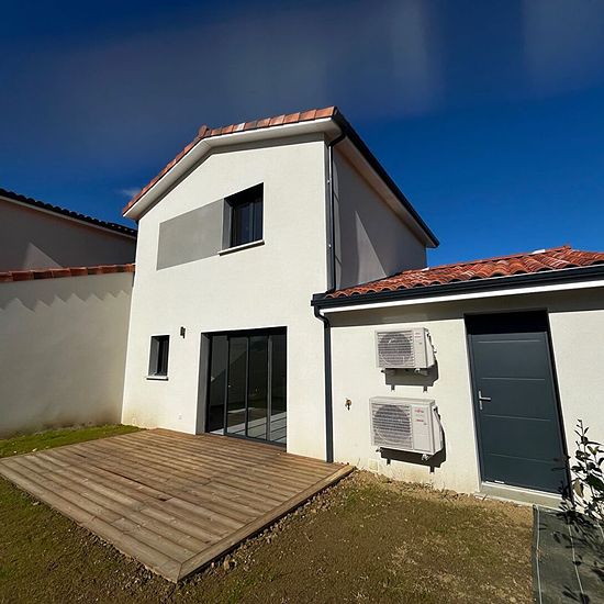 Dans un quartier résidentiel et neuf de Fronton, vous tomberez sous le charme de cette villa T4 neuve de 94.5 m². Elle se compose d'un séjour avec cuisine ouverte équipée et aménagée (plaque et hotte), une suite parentale au rez de chaussée avec se propre salle d'eau et wc séparé. A l'étage se trouve deux autre chambres, une salle d'eau avec douche et wc. La villa dispose d'un cellier et d'un garage. Il y a également un jardinet avec terrasse en bois. De très bonne prestations pour cette villa neuve : Climatisation réversible, panneau photov...