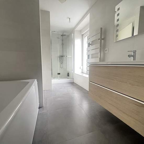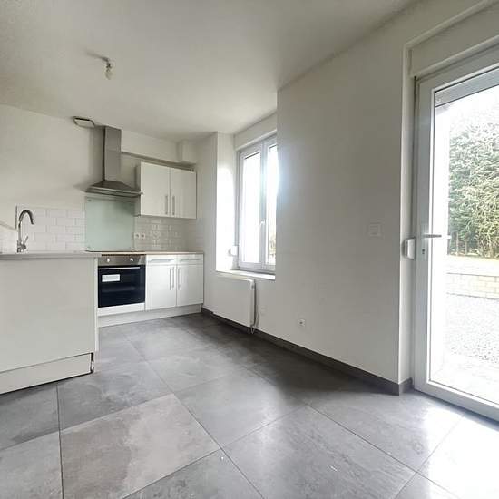 Maison jumelée - 96.48m ². MAISON à GORCY L’Agence MARINE IMMOBILIER vous propose à la location, à Gorcy, dans un environnement calme : Maison 3/4 pièces d’une superficie habitable de 96,48 m², entièrement rénovée, composée comme suit : Au rez-de-chaussée, une entrée desservant un séjour lumineux de 23,75 m² sur une cuisine aménagée et équipée d’environ 12 m², ainsi qu’un WC indépendant. Au premier étage, un palier distribuant une grande chambre principale de 18,74 m², une spacieuse salle de bain d’environ 7 m², un second WC séparé, a...