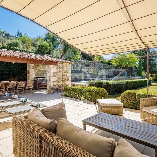Cette belle maison en pierre, située dans un quartier calme à moins de 10 mn à pied du centre du village classé de Gordes vous séduira par la qualité de ses prestations : grande piscine sécurisée, chauffée et peu profonde, sur un jardin paysagé de 1900 m² environ, agréable terrasse ombragée, terrain de pétanque, vue sur le Luberon... L'intérieur a été soigneusement restauré et propose de grandes pièces lumineuses et climatisées, avec un excellent niveau de confort et d'équipement. 3 belles chambres sur deux niveaux, chacune avec sa salle de ...