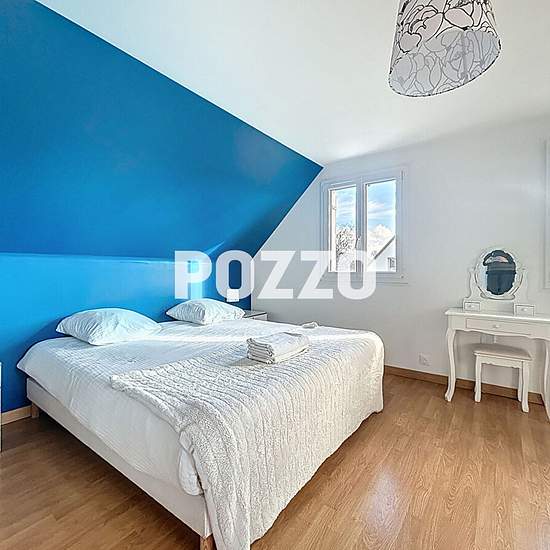 POZZO IMMOBILIER vous propose à la location cette maison individuelle qui se compose : - au rez-de-chaussée : une entrée, un séjour-salon avec cheminée, une cuisine aménagée et équipée, WC,, une véranda de 17 m² ainsi que d'une buanderie/chaufferie. - à l'étage : un palier desservant trois chambres, un WC séparé et une salle d'eau. Un garage attenant, un cabanon et un jardin complètent cette maison. Chauffage et eau chaude individuels au gaz. Eau froide individuelle. Disponible dès maintenant !