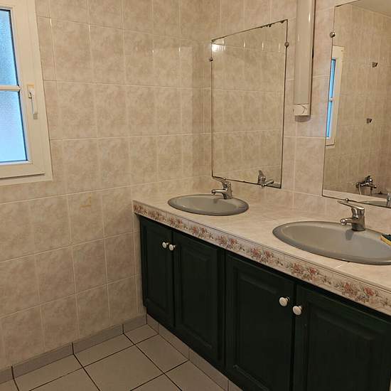 Ile de Noirmoutier, L'Epine, à louer à l'année, maison de 120 m² environ avec un garage attenant. Elle se compose au rez-de-chaussée, d'un séjour/salon avec cheminée/insert, cuisine aménagée ouverte, une arrière cuisine, 2 chambres, une salle de bains avec douche, baignoire et double vasque, wc, et à l'étage une chambre. Jardin clos avec terrasse. Disponible le 16/12/2025. Loyer : 1070€. Ordures ménagères sur justificatifs. Hono visite, constitution de dossier, rédaction bail : 539.28 €. Hono état des lieux : 231.12 € Les informations sur l...